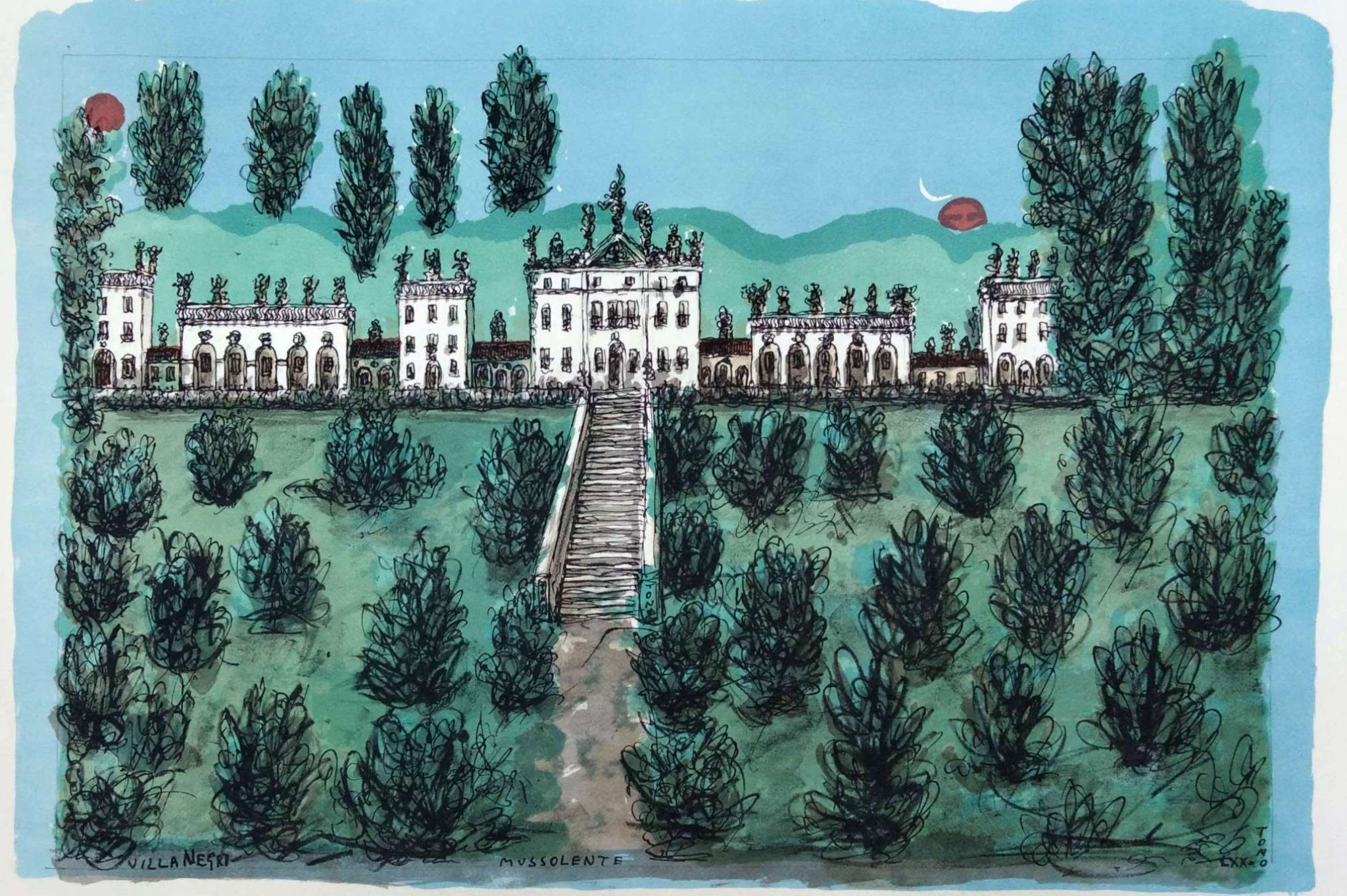 Here he presents a collection of 12 lithographs based on works by Tono Zancanaro from 1970, dedicated to the Venetian Villas. Images scattered like a constellation across the Venetian “mainland.” These villas are not mere stone buildings, but living creatures that have endured through time, bearing witness to the harmony and beauty of lost seasons.